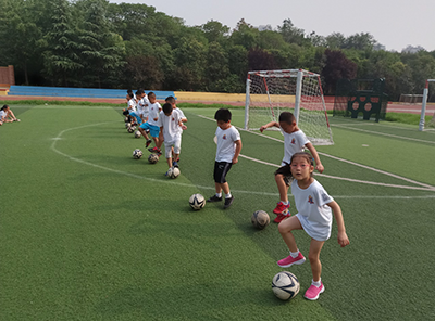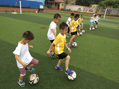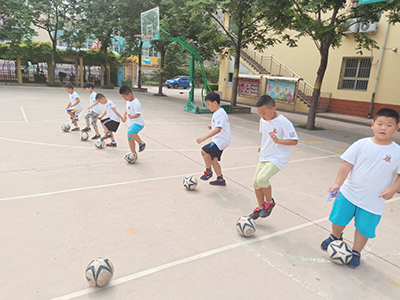 足球,作为每天的第一节课,是孩子们最能释放天性的项目。足球起源于中国的“蹴鞠”,而现代足球起源于英国。甄客俱乐部请来的新疆的两位教练都是非常优秀的教练,他们最先让孩子们认识“球”,和“球”玩儿起来,然后再去引导孩子学习基本技术。孩子们要学会用脚去控制球,并带球跑动,他们非常认真的学习运球。