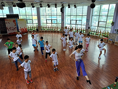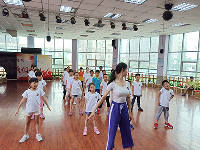 在成果展示环节,一班二班以及教师均展示了学习成果。首先是一班的小成员们,由尹老师带领表演了恰恰小组合,动作干净利落。
