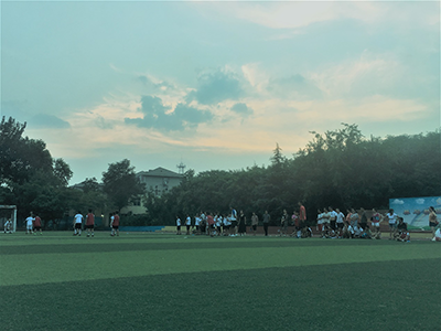 当天时间下午5:30,比赛拉开帷幕。第一场比赛是百花小队VS西尚壁小队,“黄小瘦”和“白小胖”腼腆手拉手,白队唯一女将也与百花友谊拉手,一对接一对入场,马上进行期待的比赛。