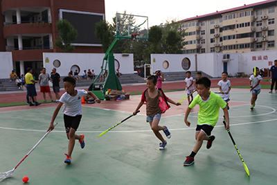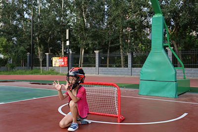 第二部分,观摩课。来到操场,孩子们已经提前站好队拿到器材准备开始上冰球课了。