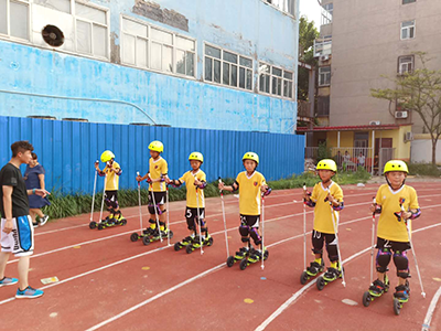 这个项目和真正的滑雪体验一样,只不过是在旱地进行,用滑轮滑行。特点是平衡要求高,非常锻炼均衡性的体能。
