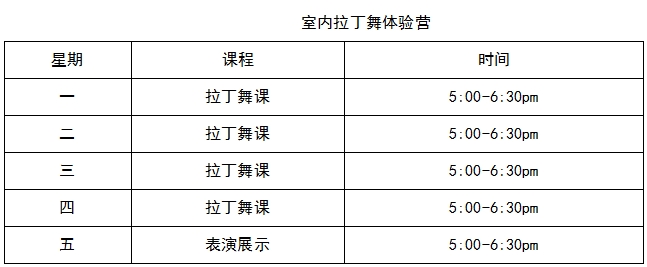 另外,我们针对爱好舞蹈的学员推出室内拉丁舞体验营,让孩子在上学前快速提升身体姿态。