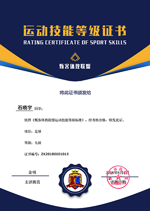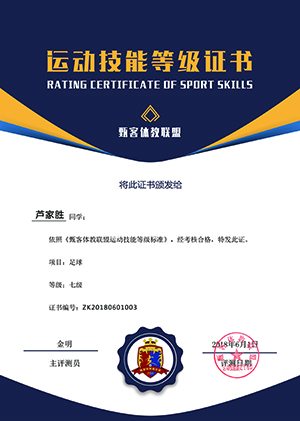 甄客体教联盟关于青少年足球运动技能等级测评的相关事宜