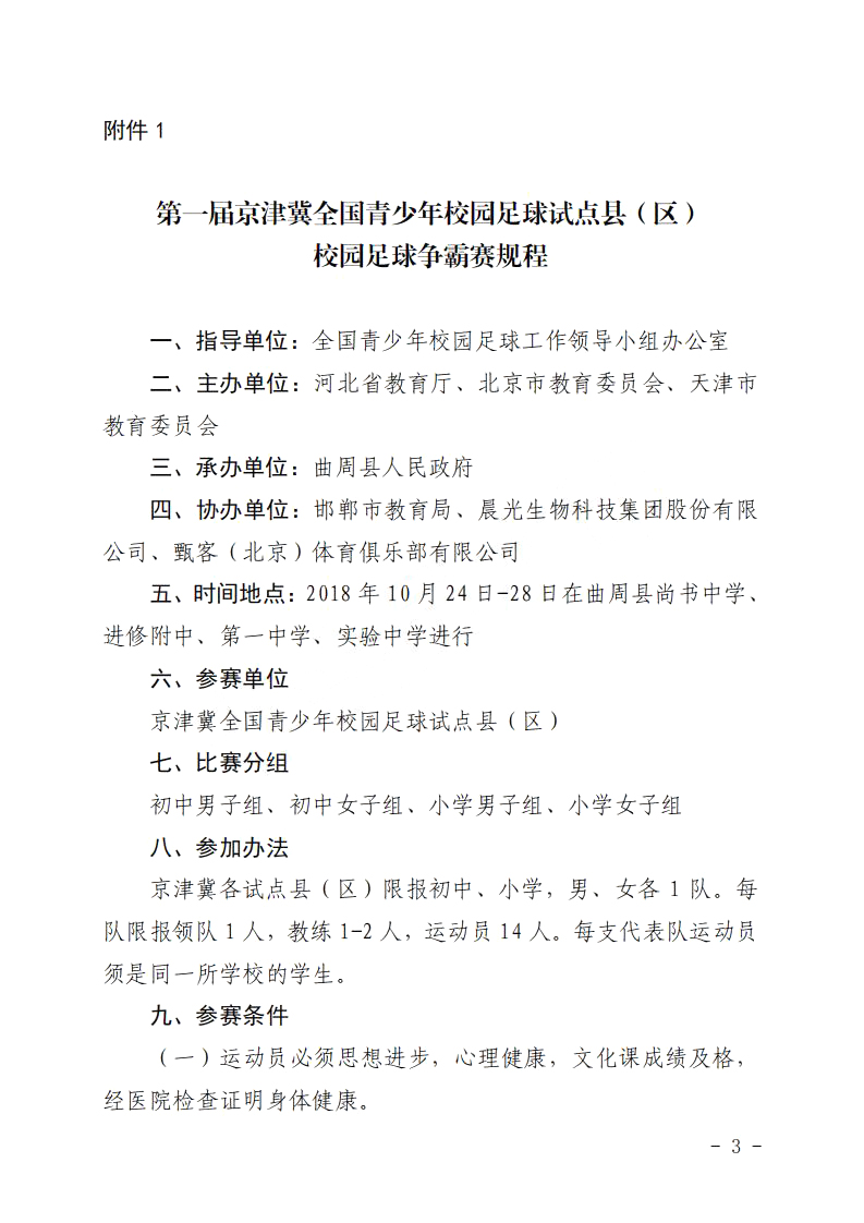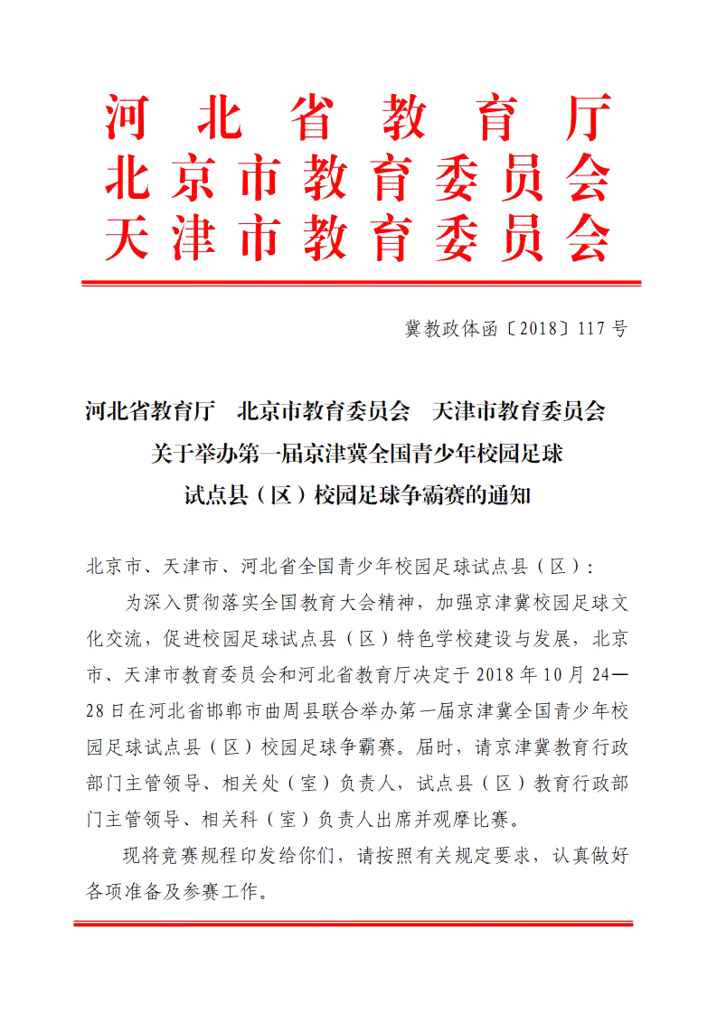 首届京津冀全国青少年试点县(区)校园足球争霸赛通知