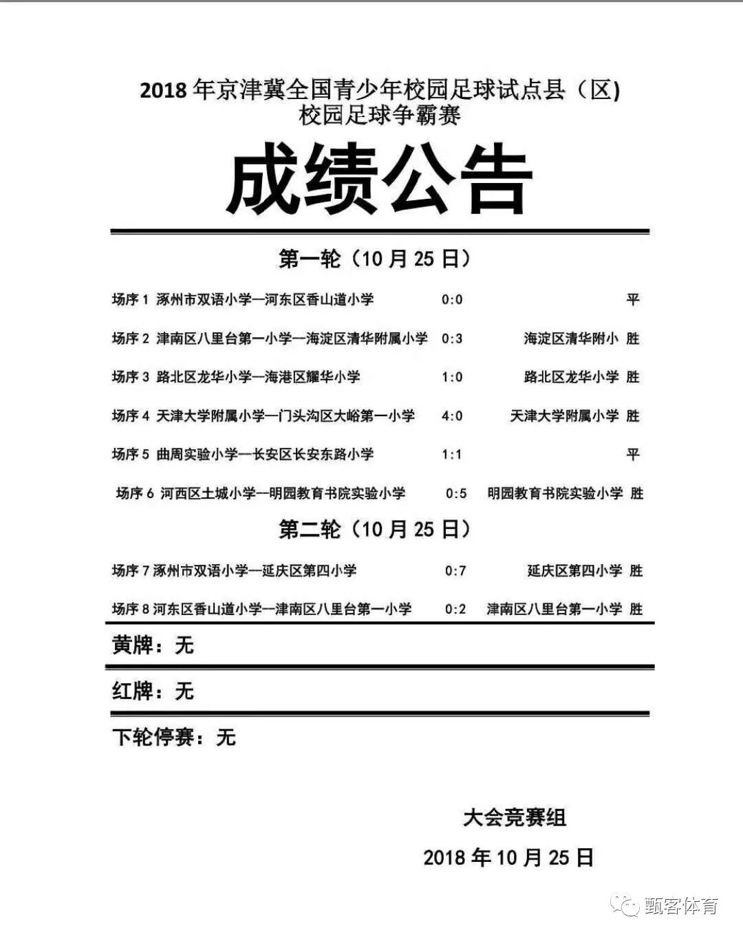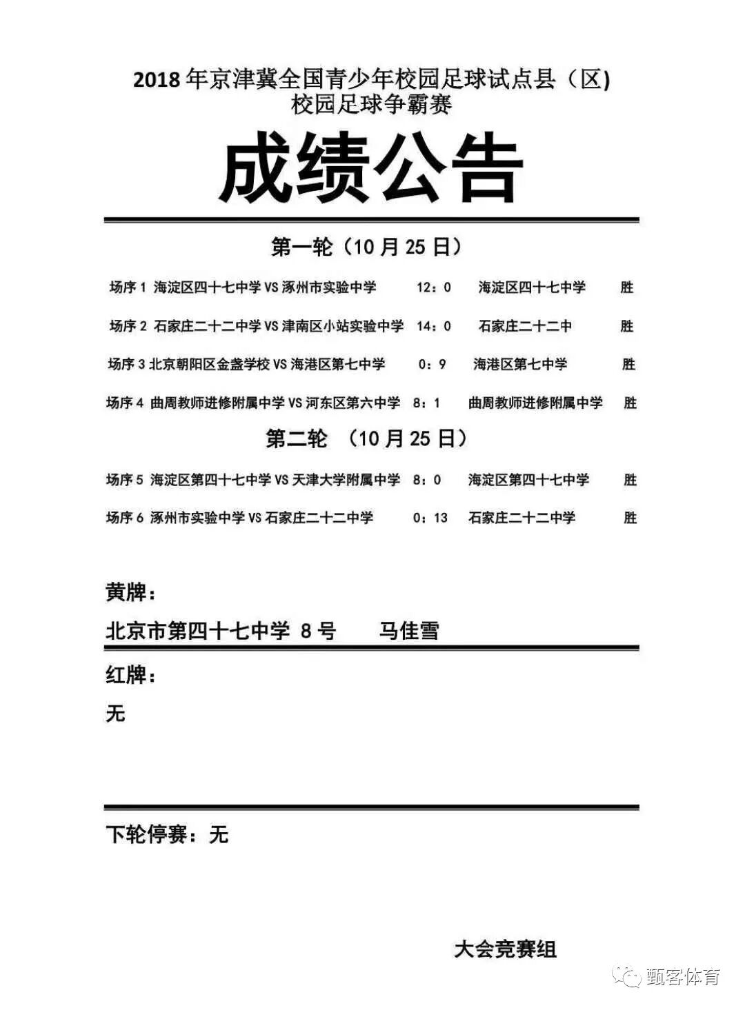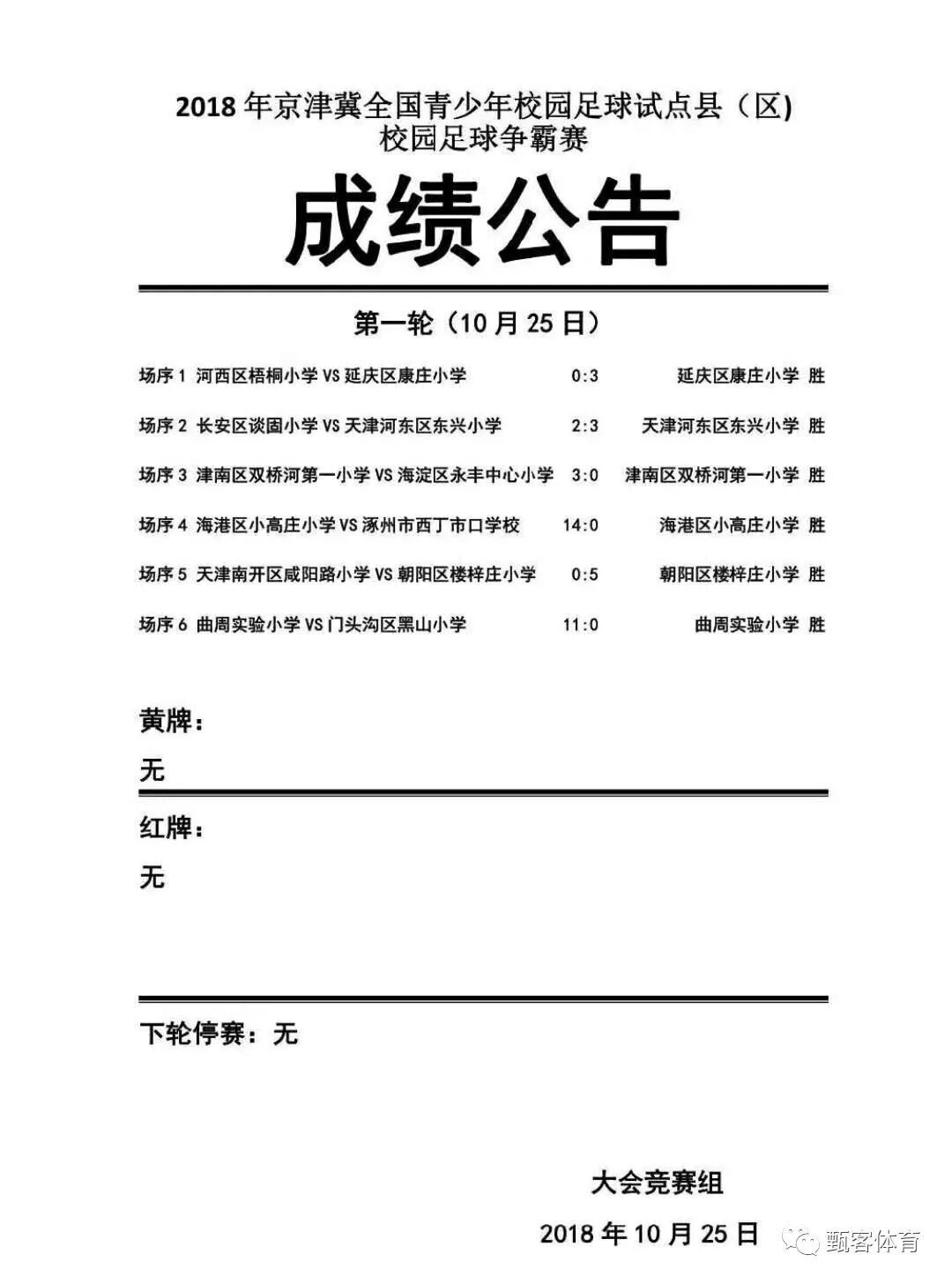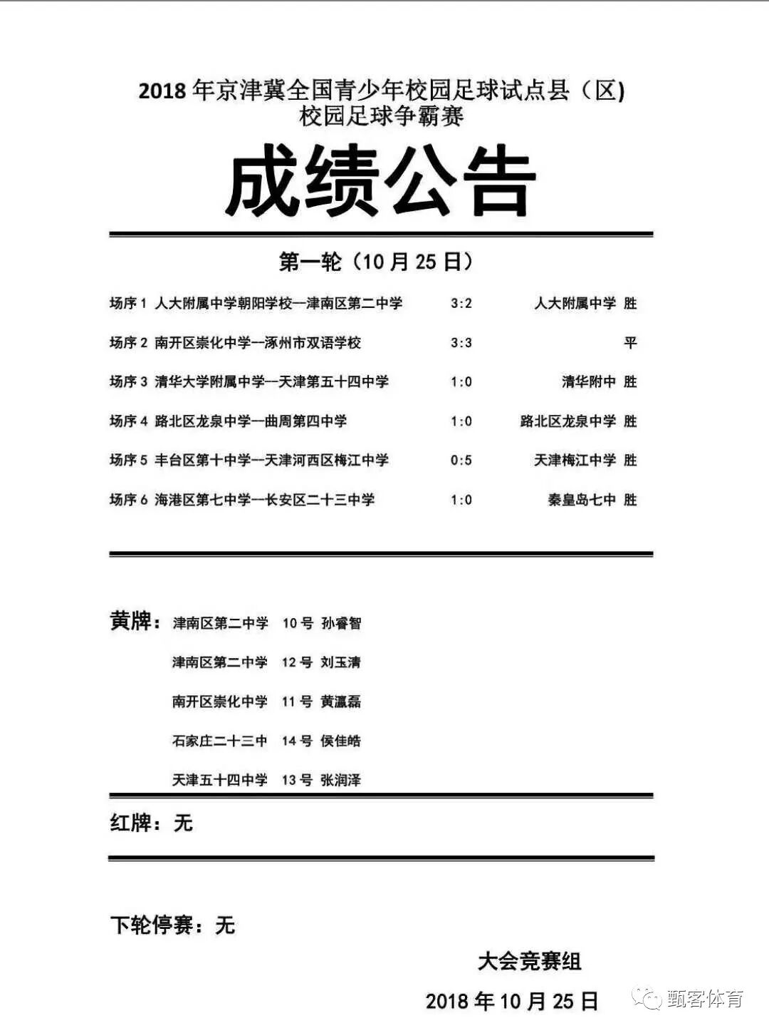 第一届京津冀“全国青少年校园足球试点县(区)校园足球争霸赛”成绩公布:
